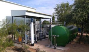 The demonstration plant consisting of an anaerobic reactor connected to 3 membrane tanks. Image courtesy of Ángel Robles et al.