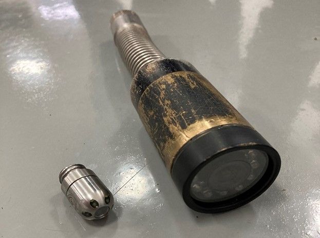 The new camera compared to the traditional larger camera. Image courtesy of Welsh Water