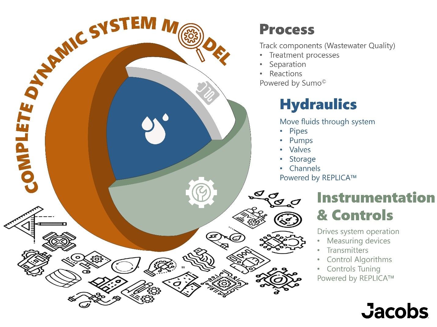 The integrated model we developed for the Changi WRP combines laboratory and automated real-time data input from supervisory control and data acquisition (SCADA) systems with software simulation packages (Replica™ and Sumo™) to integrate hydraulics, process, controls, and data analytics into a single platform. The resulting Digital Twin is capable of replicating plant operations and predicting future performance in real-time.